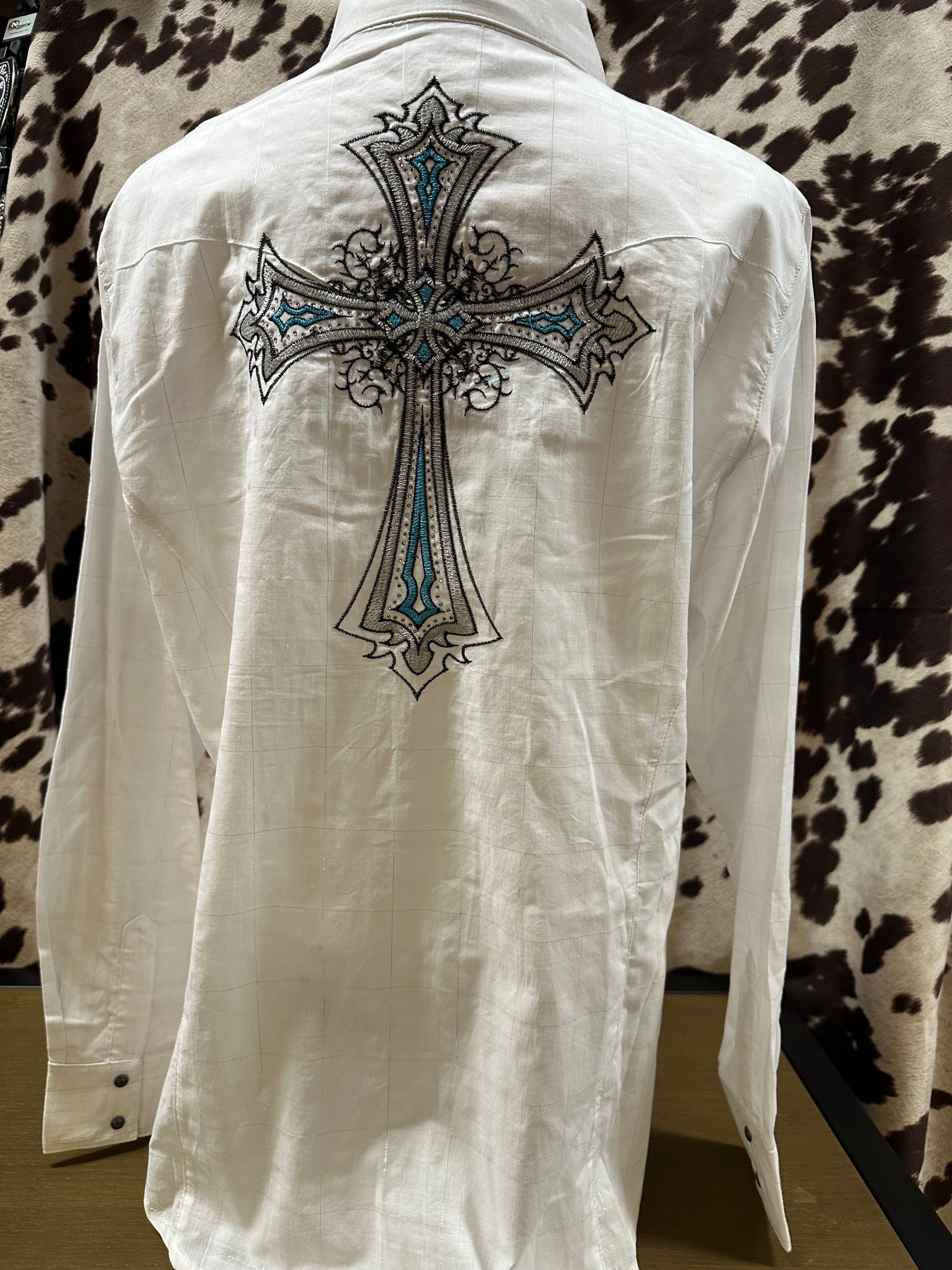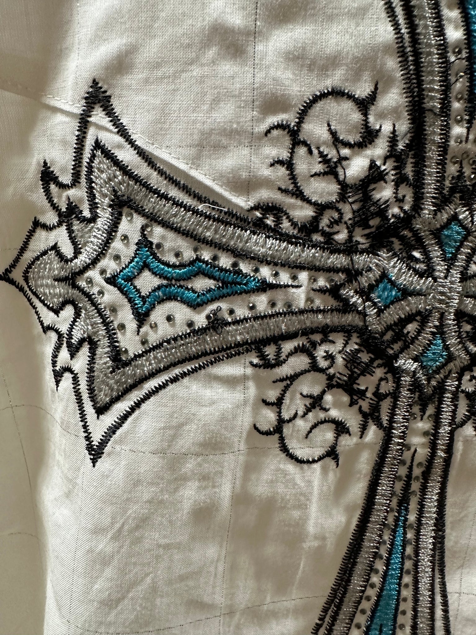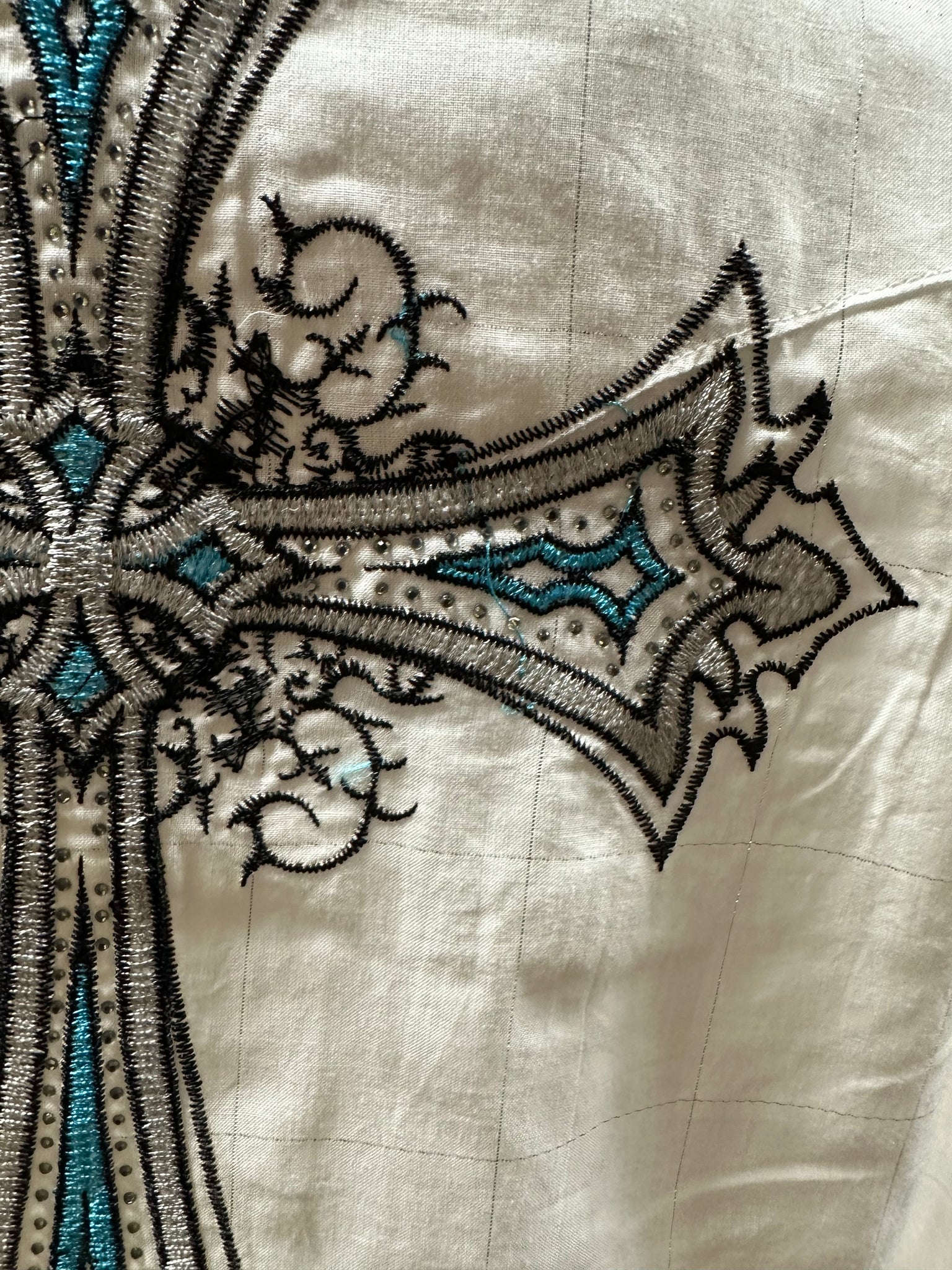 • Embellishments: Stones around western yoke, embroidered cross on the back