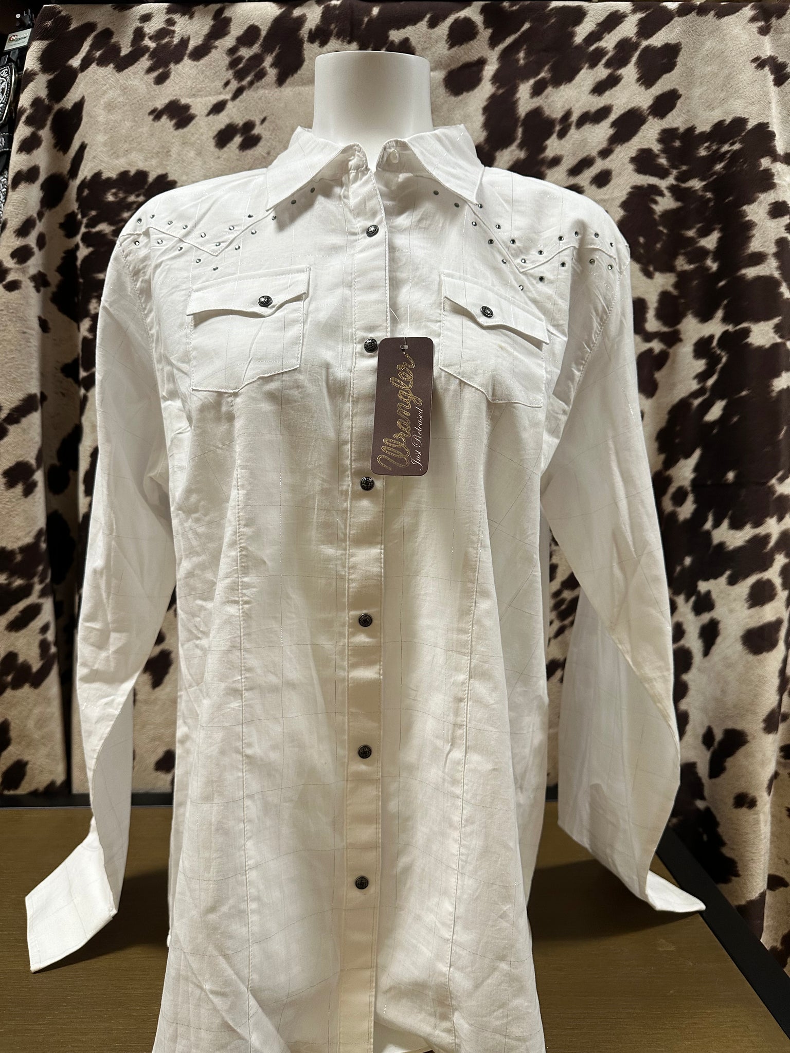 Wrangler ladies western shirt - white with stripes and embroidery (stain, final sale)