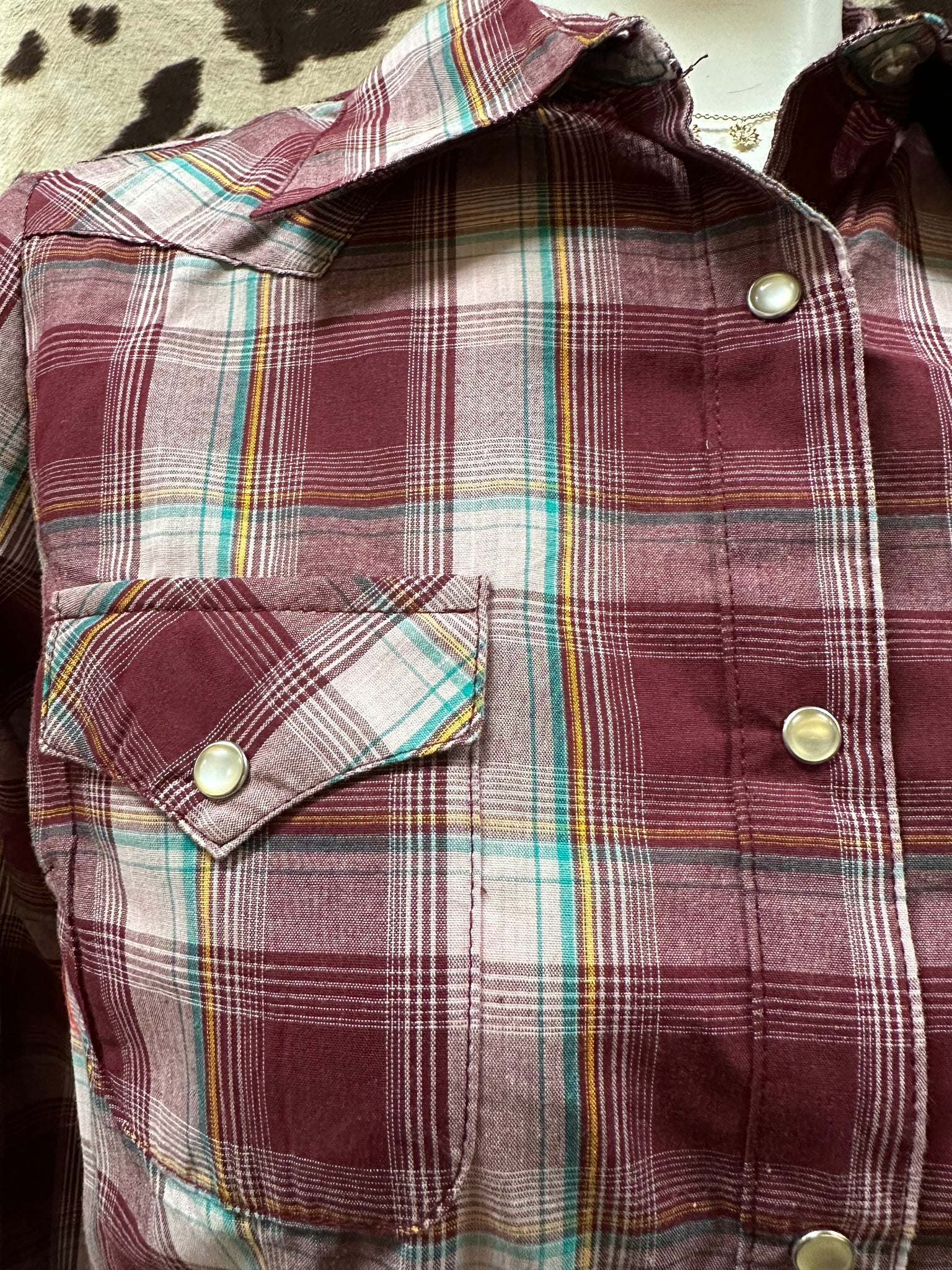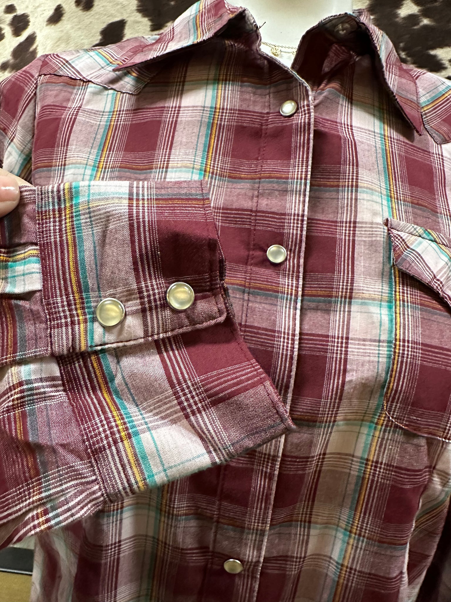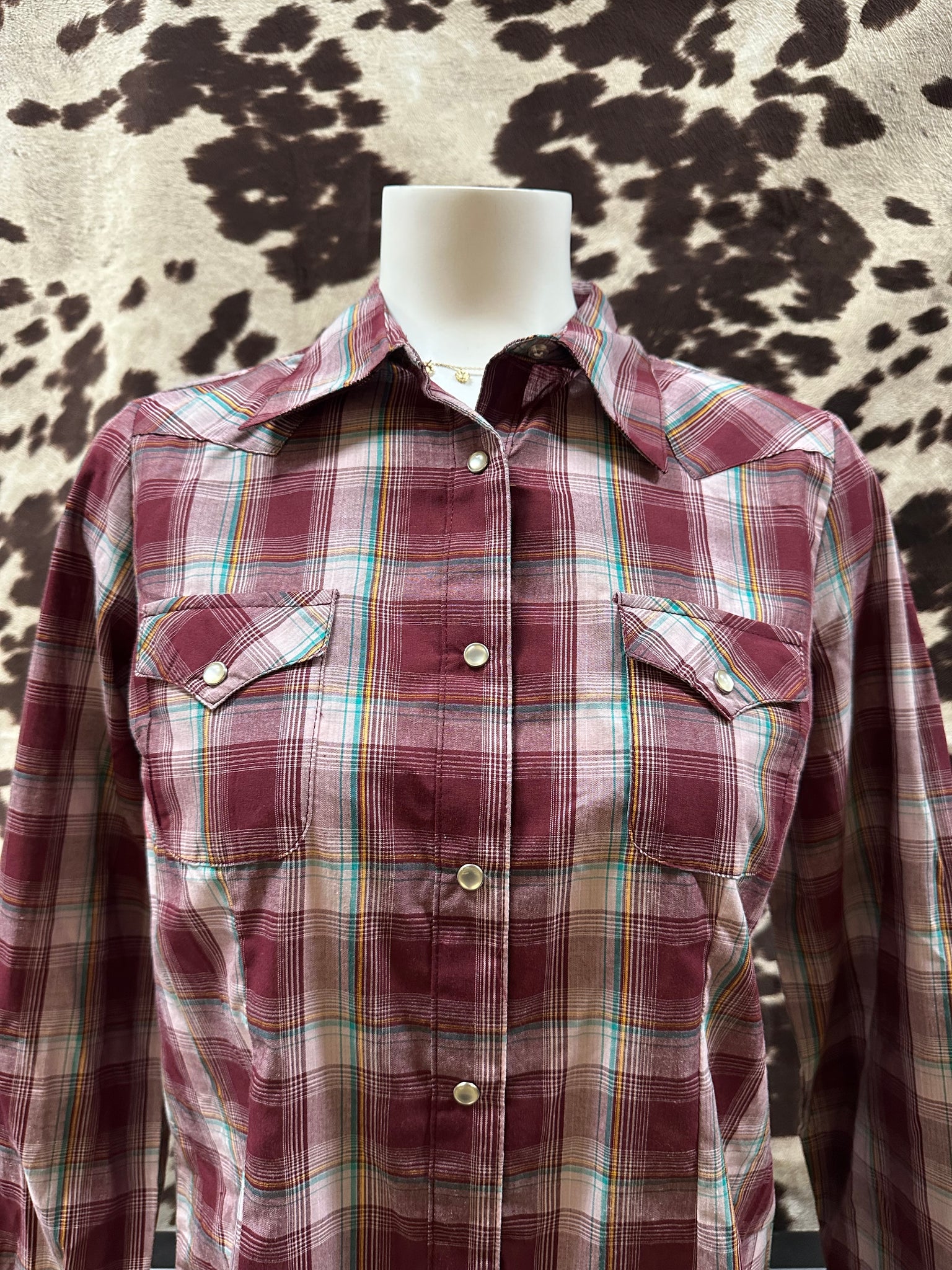 Wrangler ladies snap button shirt - plaid burgundy (final sale)