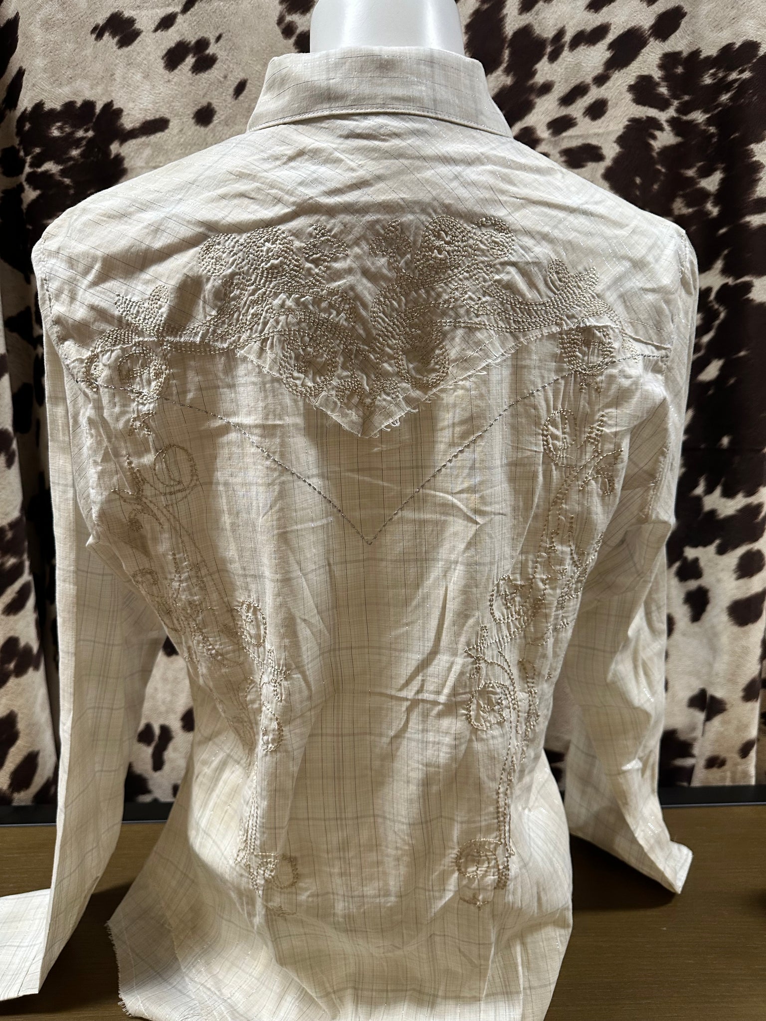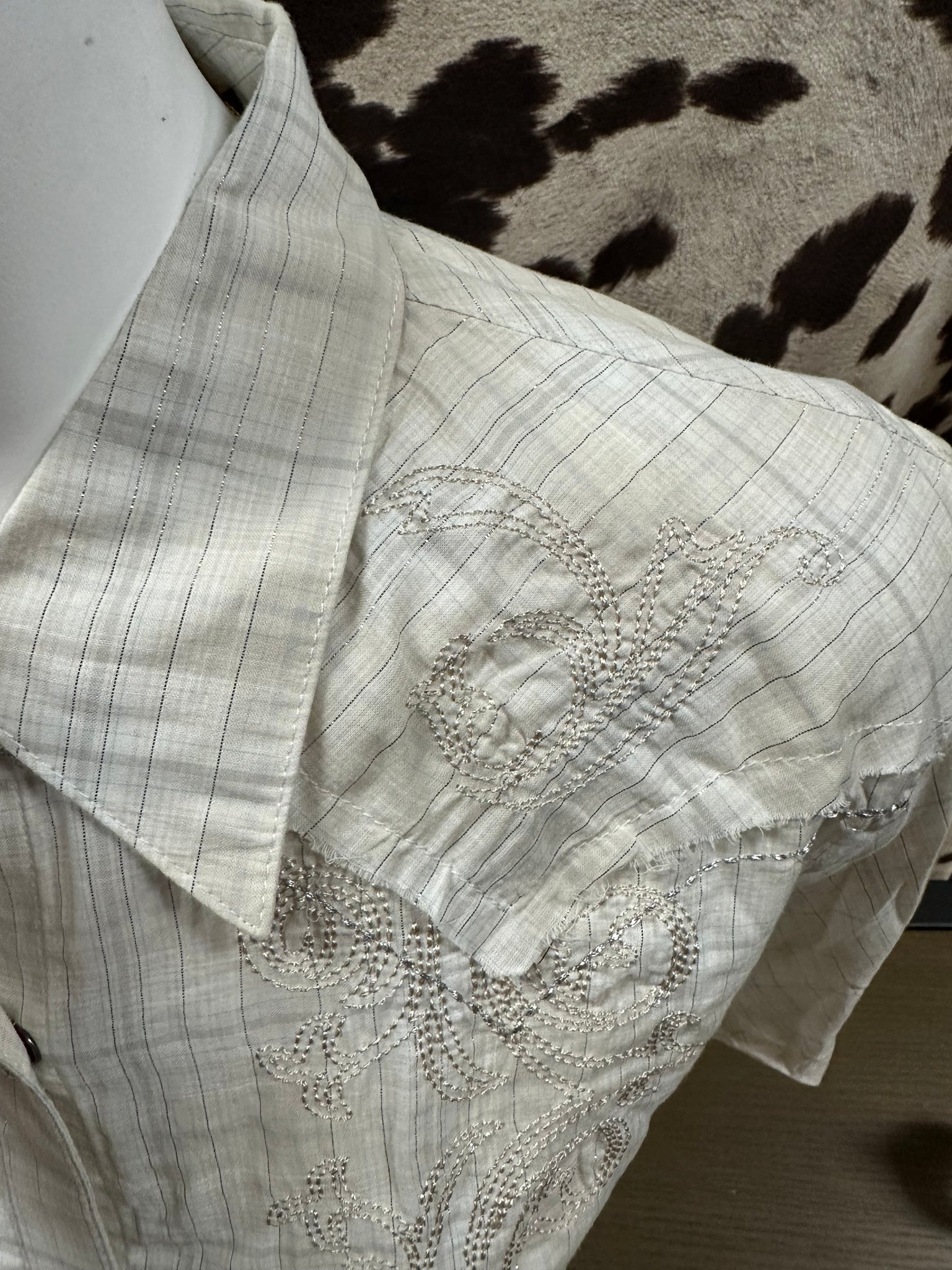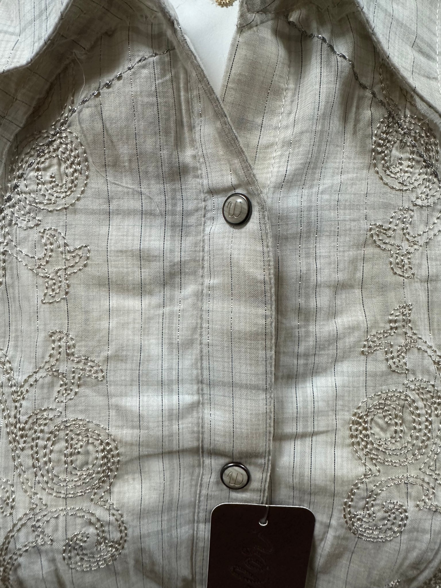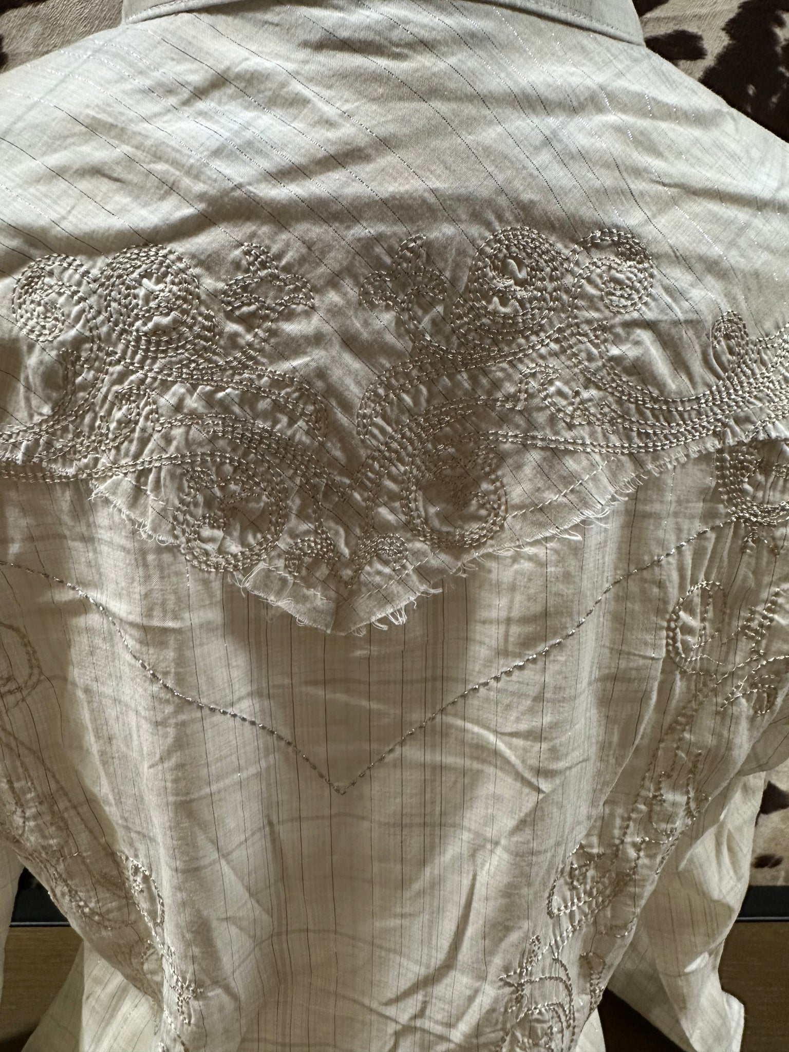 Color: Cream/off-white with silver, cream, and darker tone stripes