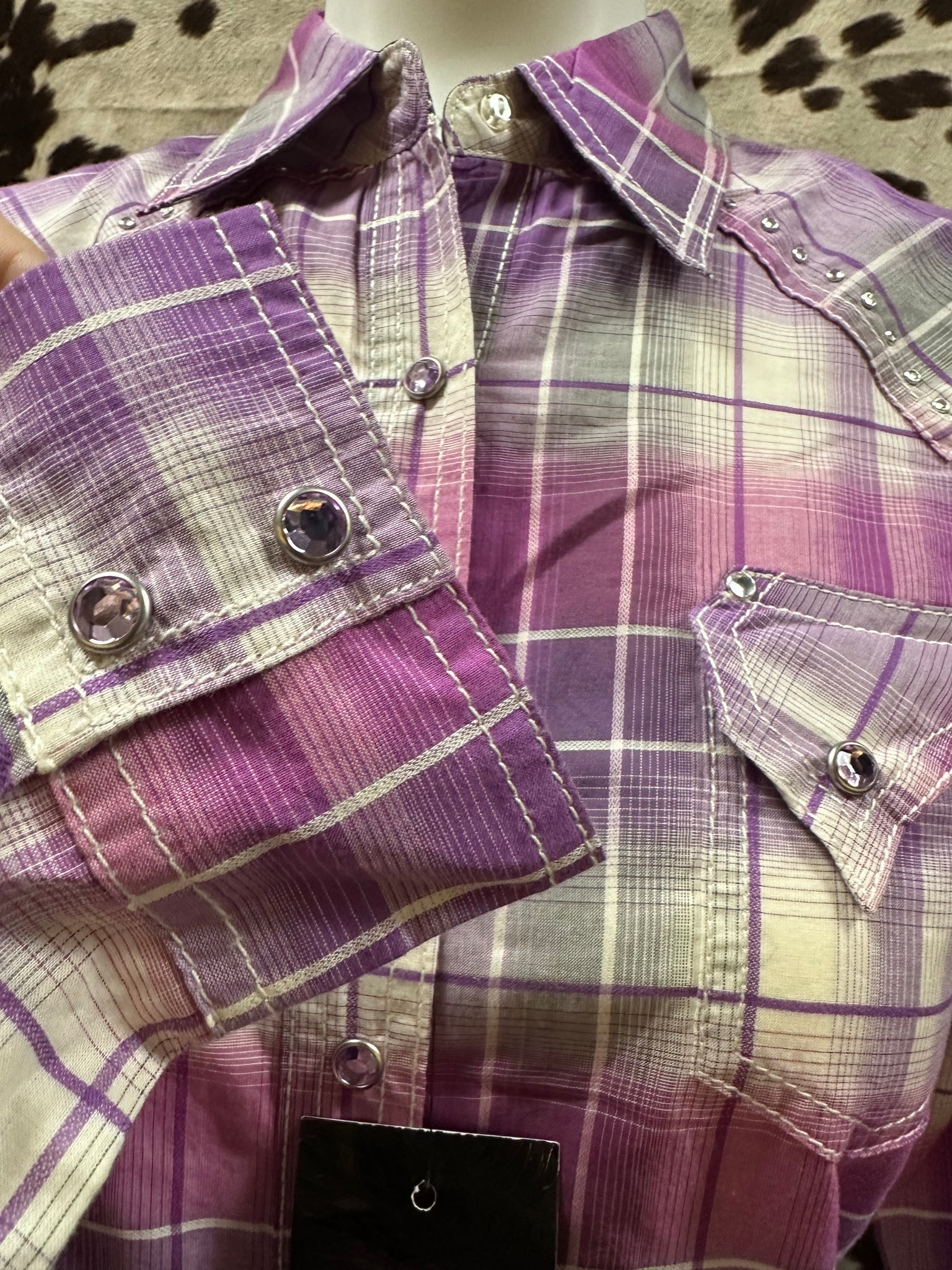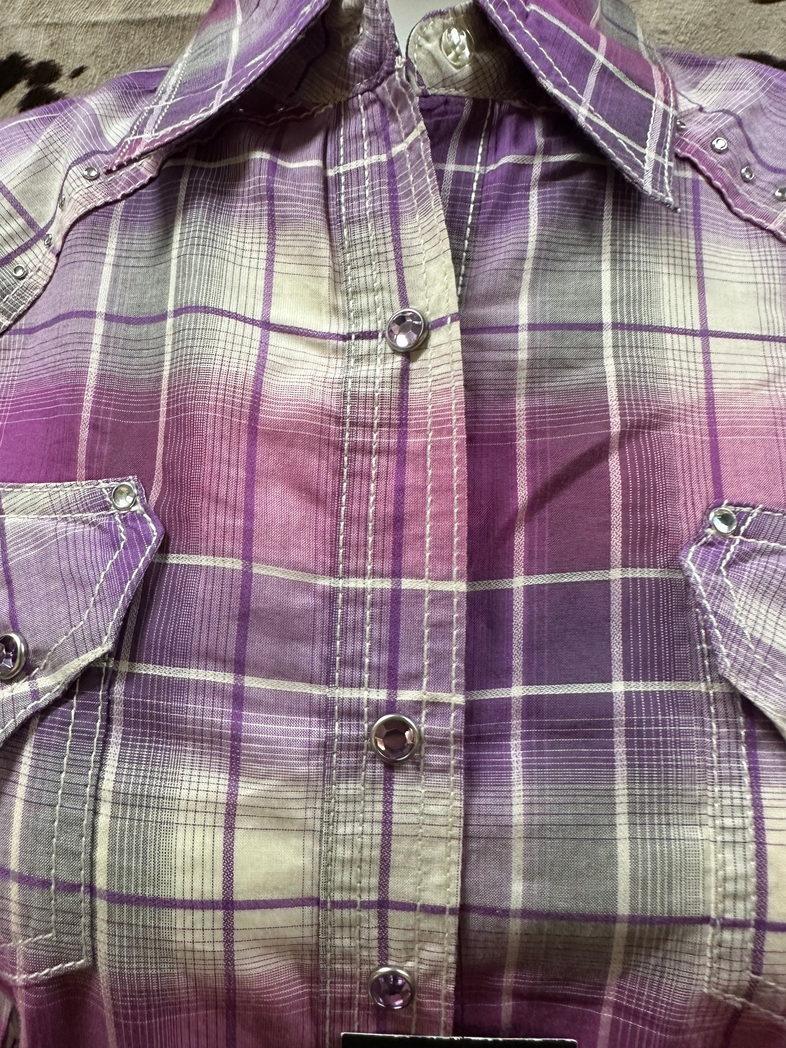 Details: Studded western yokes on the front and back, snap front pockets, snap-button closures