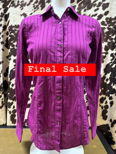 Rock 47 by Wrangler Women’s Snap Button-Up Shirt – Purple with Studs & Stamped Sleeve Design (Final sale)